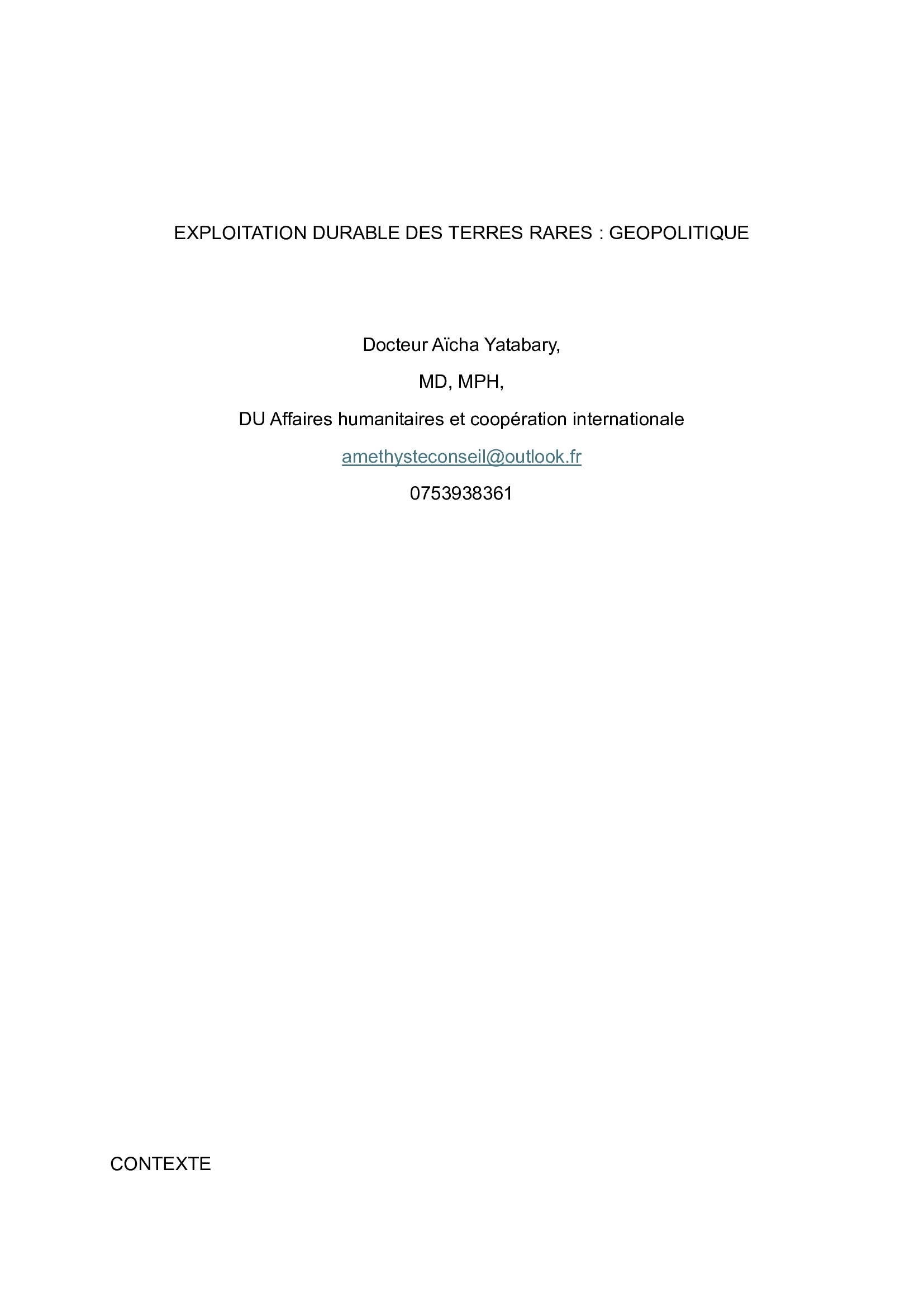 Un document sur les enjeux des terres rares aujourd'hui, l'impact sur la santé et l'environnement des communautés qu'elles concernent et comment revaloriser les déchets issus de cette industrie.