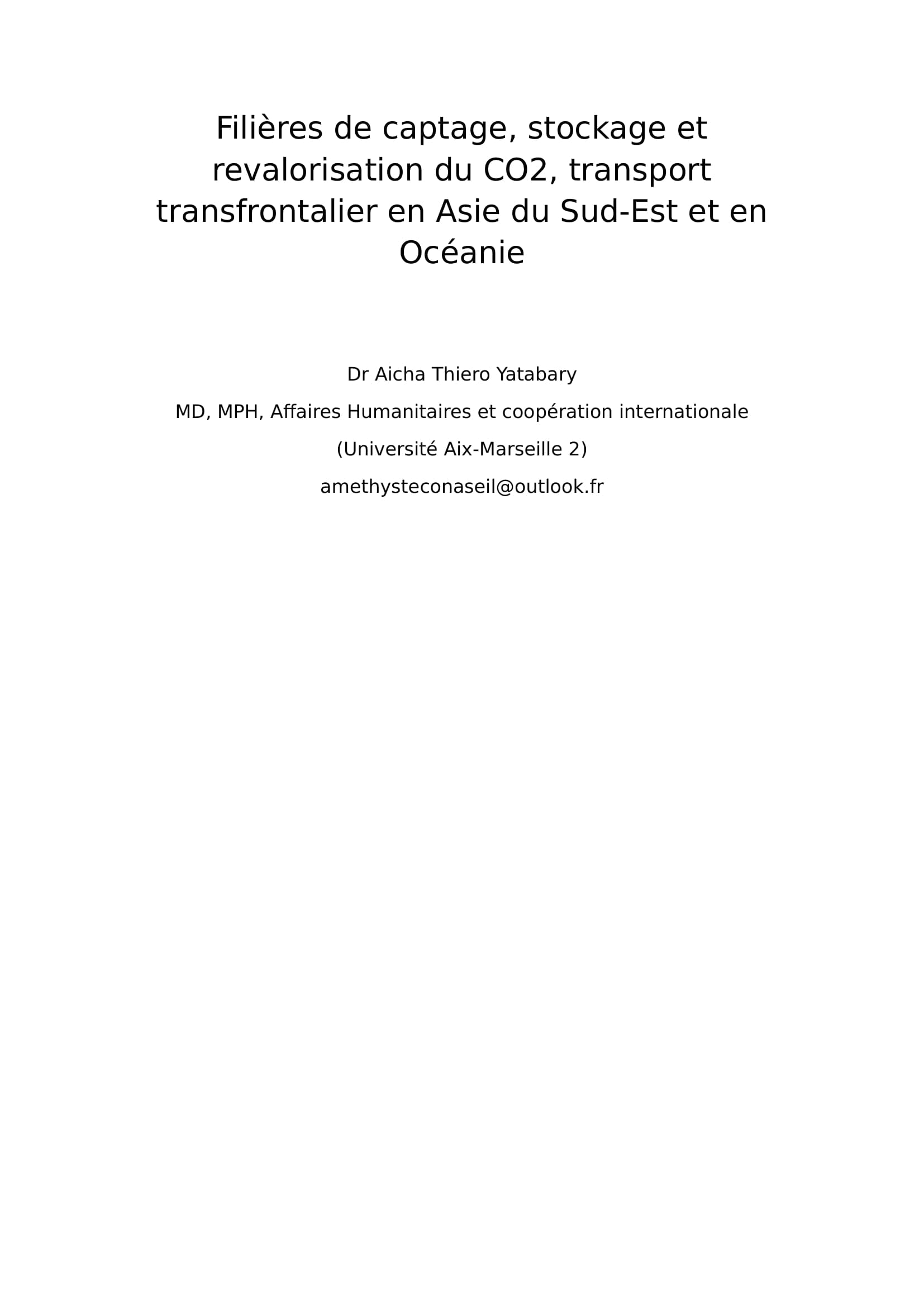 Filières de captage, stockage, revalorisation du CO2 en Asie du Sud-Est et en Océanie, transport transfrontalier.