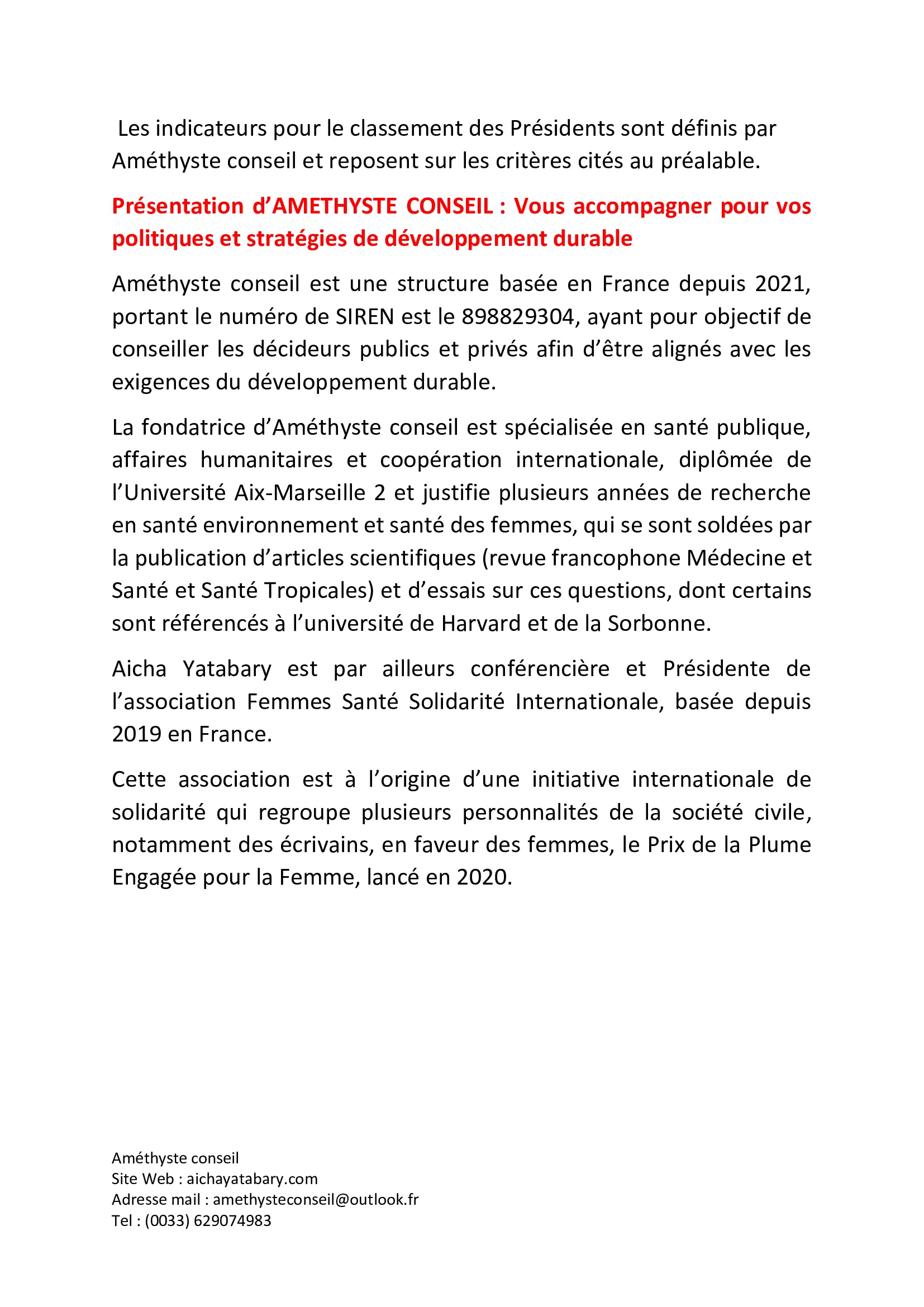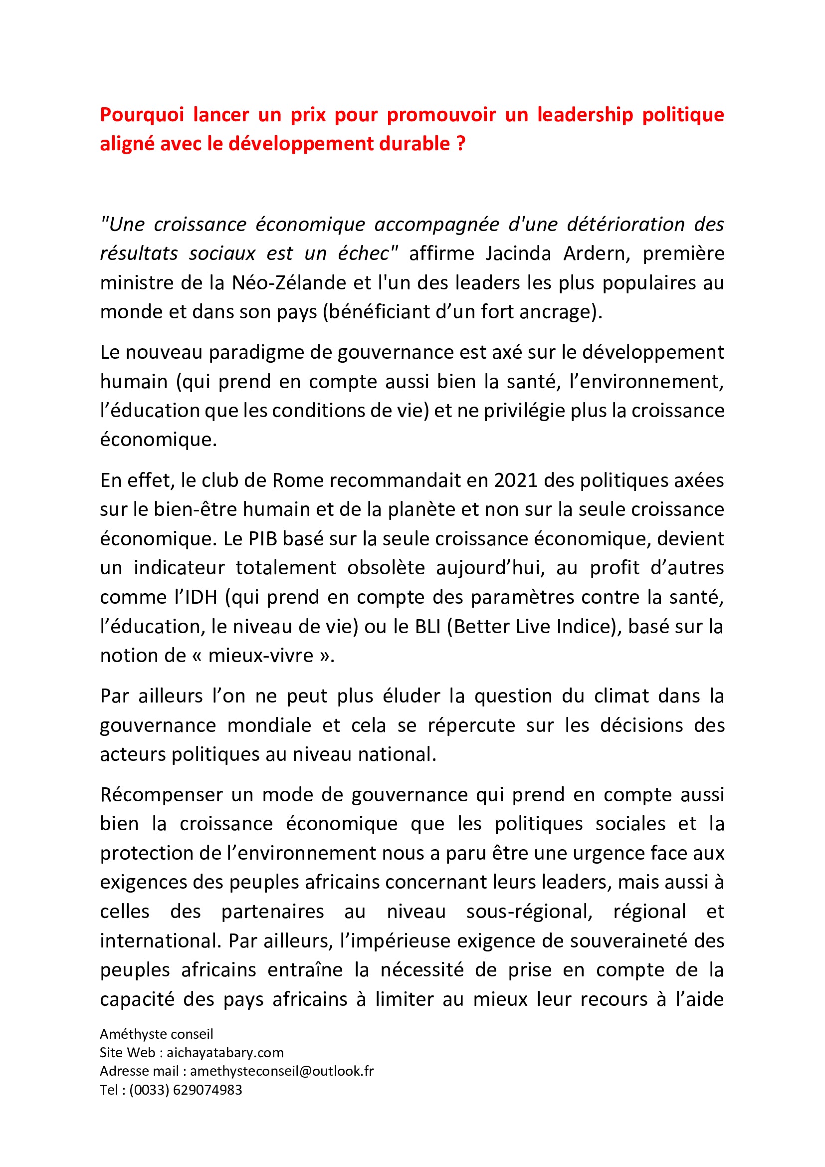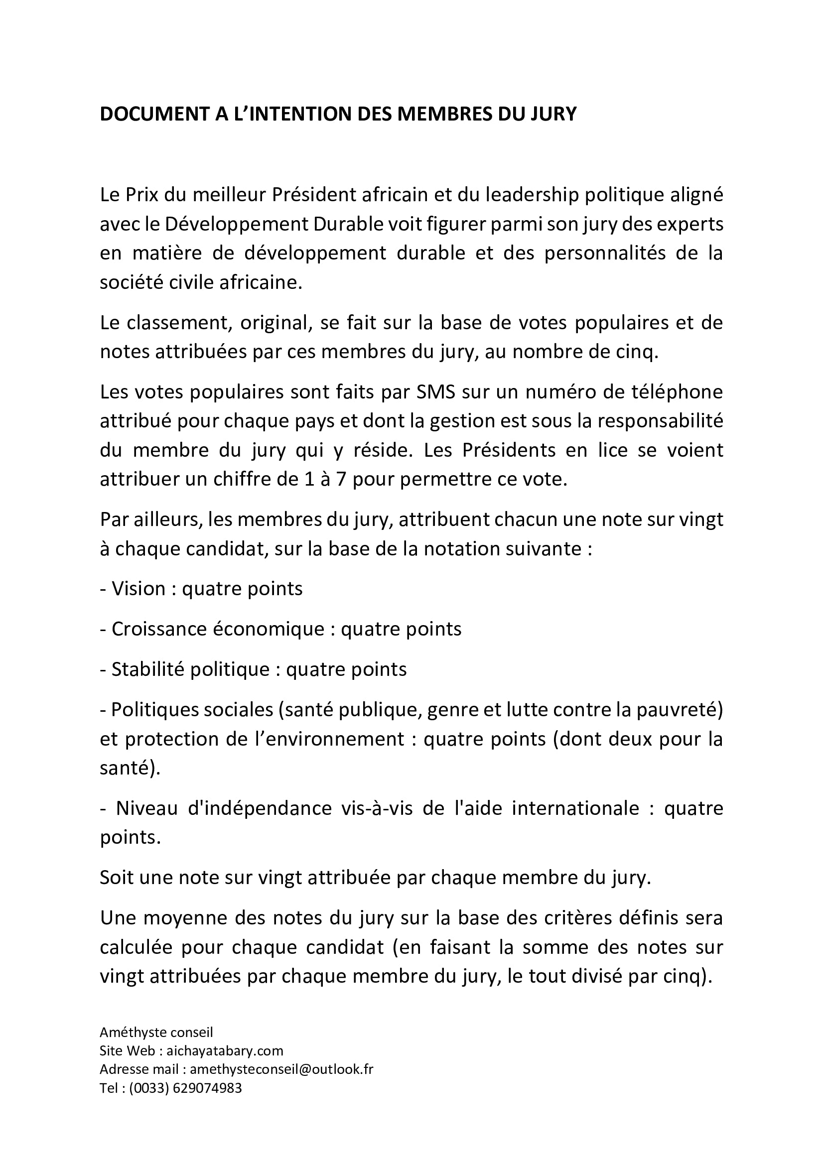 Un prix organisé par l'entreprise Améthyste conseil dans le cadre de ses activités de solidarité, avec la société civile africaine.